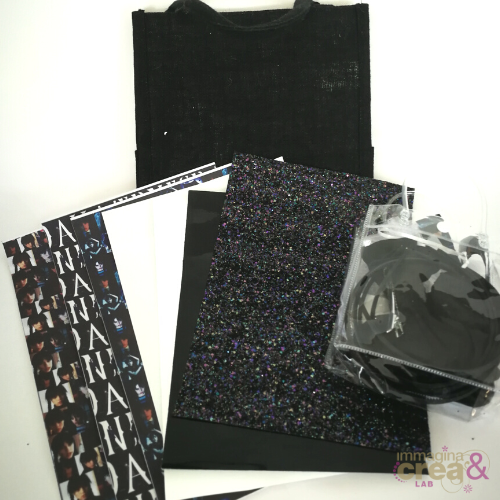 - 2 FOGLI FINTA PELLE MERCOLEDI' (a scelta tra le 3 opzioni)novita- 1 TESSUTO GLITTERATO NERO SPACE SPECIALE