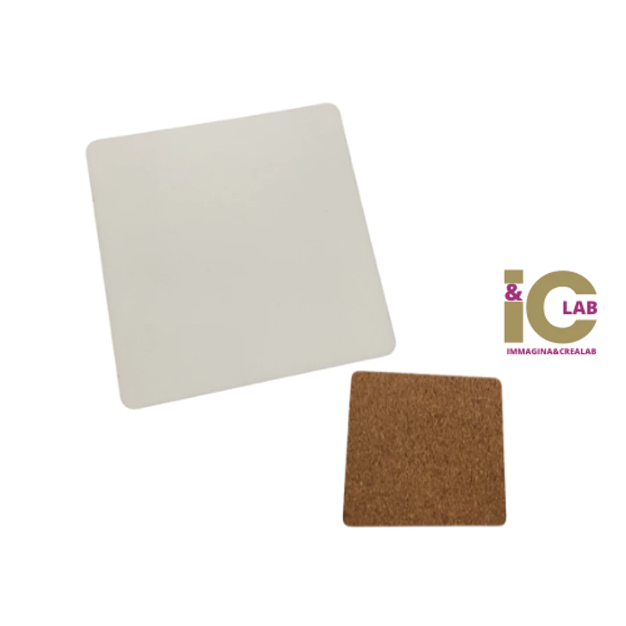 Sottobicchiere quadrato in legno lucido con resto in sughero antiscivolo